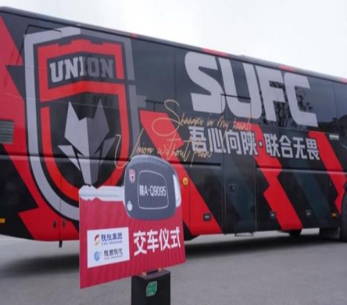 随着签约交车仪式开启,新大巴「陕A·Q9095」正式亮相。新大巴「陕A·Q9095」由「陕西旅汽」提供、由球迷会员投票表决决定车辆涂装样式。仪式伊始,陕西联合足球俱乐部董事长黄盛华在致辞中表示:“大巴车的交接是一种传承、展望;感谢陕旅集团、陕西旅汽、陕西球迷的支持”。